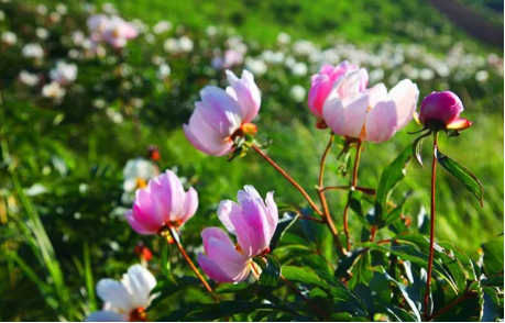 从五月中旬开始,在温暖的阳光普照下,各色的野花就开始逐渐绽放,随着气候和季节的变换,这片草原随着不同种类的鲜花盛开而呈现出变幻多姿的色彩。