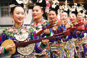 当地侗族姑娘表演“非遗”项目侗族琵琶歌