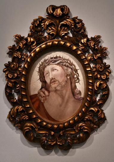 本作品展现的是耶稣被钉在十字架上遭受残酷折磨的神态。作者用乱针绣和平绣相结合的方法,用细密的排针将耶稣的苦难放大在观者面前。整个绣面呈现出了静默而肃穆的氛围。