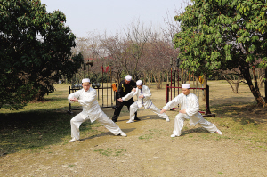 颜勇(中,穿黑衣者)指导回族青年习练晰扬掌