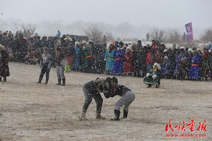 降雪也没有中断搏克比赛