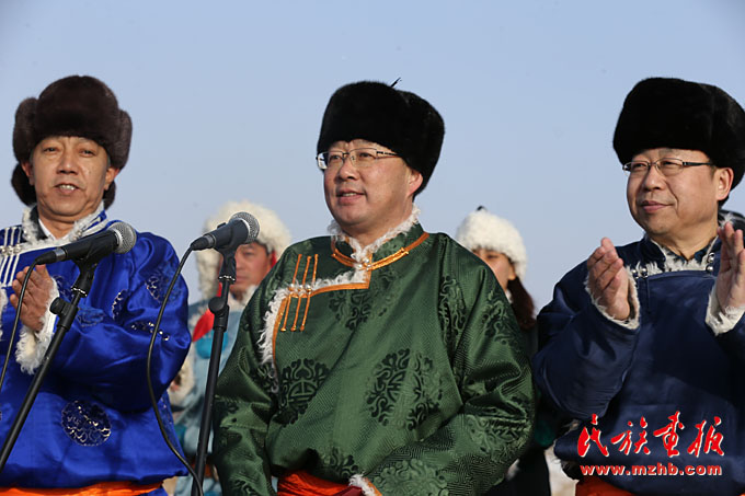 锡林郭勒盟委副书记、行署盟长霍照良(中)宣布那达慕开幕
