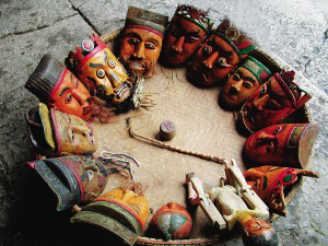 现在的16具面具,是班主宋成权在1997年春带着戏班子成员,从正月初一到十五,逐家逐户跳花灯收贺钱和群众集资共筹集资,然后由宋成权到重庆酉阳请师傅雕刻的。