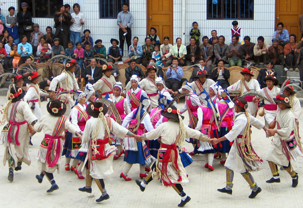 德昌傈僳族婚礼上男女青年的“打跳”“蹢脚舞” 胡小平摄影 引自民族画报