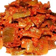 把盐渍好的青菜削去老叶、粗皮,用甜酒、糖拌匀,再按比例加入蒜苗、蒜头、辣椒粉、冰糖、食盐和适量白酒,调好后分坛包装,密封贮存。约两个月后即可出厂销售。