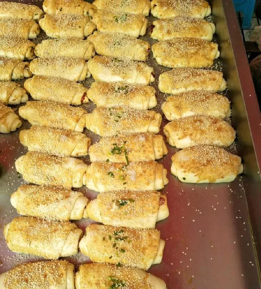 外表黄澄澄,撒着一层芝麻,一口咬开,里面的辣椒、香肠、肉末是否让您食指大动呢?