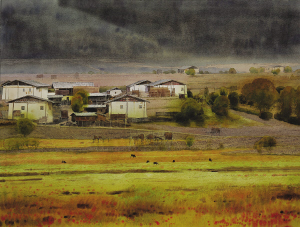 许海刚认为,水彩画的诞生是为了户外写生的方便,因此,风景写生极为重要。几十年来,他每年都会带着学生外出写生,从东北的伊春到海南的三亚,从南疆的塔什库尔干到福建的崇城,流连于高山大海、小桥流水之间。他最喜爱的,是西部民族地区的风景,不但气象开阔,变化多姿,而且人烟稀少,特别适宜入画。