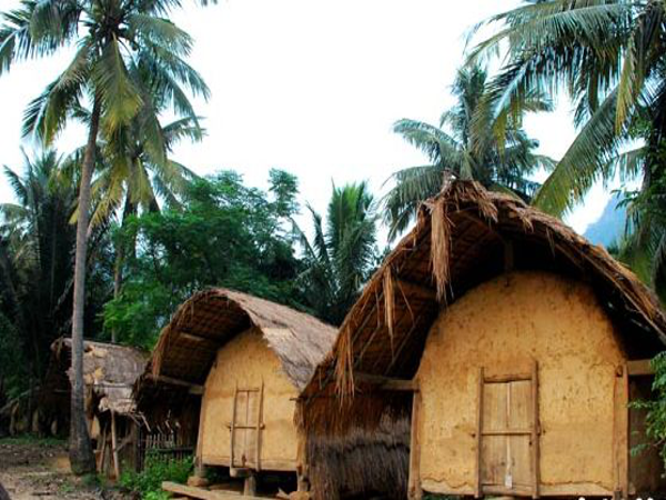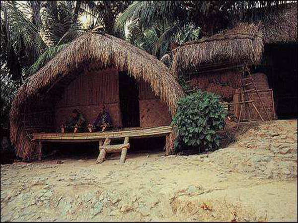 船型屋作为黎族最古老的民居,有高架船型屋与低架(落地式)船型屋之分,其外形像船篷,拱形状,用红、白藤扎架,拱形的人字屋顶上盖以厚厚的芭草或葵叶,几乎一直延伸到地面上,从远处看,犹如一艘倒扣的船。其圆拱造型利于抵抗台风的侵袭,架空的结构有防湿、防瘴、防雨的作用,茅草屋面也有较好的防潮、隔热功能。而且能就地取材,拆建也很方便。鉴于这些优点,船形屋得以世代流传下来。
