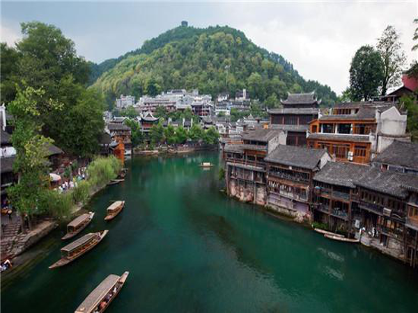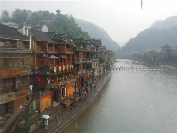 没有想象中的古老城楼,取而代之的是吊脚楼,街边整整齐齐坐着贩卖各种绣品、纪念品的苗家老人,再往里一点,见到便看见清澈的沱江,一阵清风吹来,有江水的湿气,亦有对面餐馆的饭菜香,过往的游客或在戏水,或在渡江,亦或摆出各种姿势拍照,我想,也许这就是新的生活方式,简单而温馨。