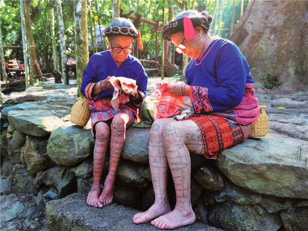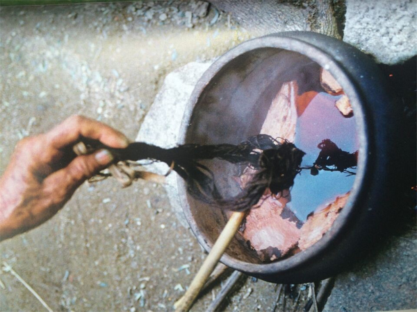 “染”是指纱线染色,包括美孚方言妇女在白色经线上扎结成所需的花纹,再染成黑白斑花的经线,然后用彩色纬线编织出色彩斑斓的筒裙图案。