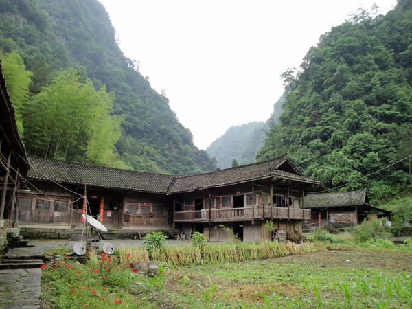 这“土家十三寨”位于重庆市黔江区小南海镇新建村,东邻小南海地震遗址公园,南邻八面山自然风景区,西过茨竹溪连接武陵仙山,北接渝鄂胜景鸡公山,距黔江主城区约30公里,景区面积为6.5平方公里,有13个典型的土家院落,这里集居生活着200多户近1000名土家族人。在这里,土家人以自己的生产生活方式世代繁衍生息,独特的民族风情存留千年。