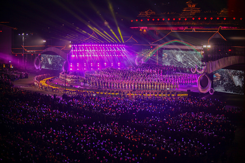 2017年12月18日,中国侗年暨第八届侗文化旅游节在贵州省黎平县开幕,万人同唱侗族大歌 (瞿宏伦 / 摄)