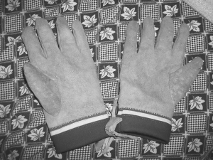 巴拉杰依缝制的鹿皮手套。