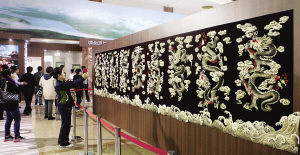 用优质大马哈鱼皮手工制作的工艺品”九龙壁”