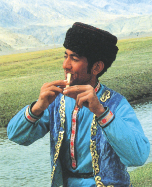 吹鹰笛的塔吉克男子