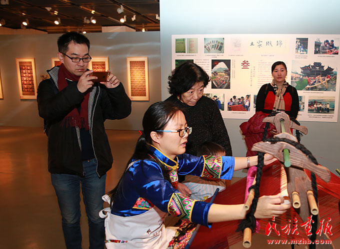 观众对土家织锦的制作过程表现出极大的兴趣