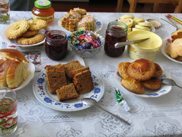 中国俄罗斯族的饮食文化既保留了传统俄罗斯人的饮食特点,也吸收借鉴了其他民族饮食文化的精髓。透过俄罗斯族的一日三餐,我们便可以窥视出俄罗斯人迁居中国之后其饮食文化的变化,俄罗斯族早餐一般是传统俄罗斯面包抹黄油,喝热牛奶;午餐为面包和菜;晚饭一般比较丰富,会吃抓饭、拉条子、米饭和炒菜。