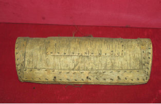 鄂伦春族素有“白桦民族”之称,白桦树皮制品种类非常多,大到可以乘人载物的桦皮船、围盖“仙人柱”的“铁克沙”,小到可以装在衣兜里的烟盒和含在口中的狍哨,提水用的桶、采集用的篓、装物用的箱、盛饭用的盆、吃饭用的碗、喝酒用的蛊等等。桦树皮制品的装饰图案可以通过压划、压印(点刺)、剔刻、烙烫、补花、绘画等多种方法形成。压印点刺是最常用的装饰手段,工具是用兽骨制成的,分单齿、双齿、多齿和简单几何形几种。先在剪裁好的器物材料上,用压、打等方法点刺出装饰纹样,再缝合成器物成品。这种装饰多为素面凹形花纹,显得朴实单纯,而且器物越陈旧桦皮颜色越深,越有光泽,图纹越清晰。也有人在压打线上着色,这便形成了另一种风格,美观艳丽而且突出了物象特征。