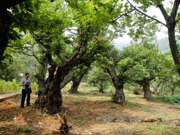 二是:据《鸡足山志》记载,这些板栗树最古老的已有500多年的历史。300多年前,村民和鸡足山的僧人就用这里的板栗招待徐霞客,让这位走遍大江南北的大旅行家赞不绝口。春夏秋冬,村里村外一片片板栗树发叶开花结果落叶,成为不同季节里一道特别的风景。特别是在春天,有绵绵细雨的滋润,有朵朵桃花的陪伴,还有簇簇绿竹的点缀,加之村中鸡犬相闻,村旁溪水潺潺,远道而来的客人无不沉醉在这美好的画面里。
