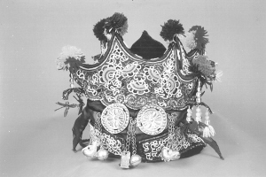 绣花帽由里外两部分组成,素有“制做绣花帽,先做好衬套”之说。即先按儿童头径大小制衬套,做法较简单,用染过的家织布做里衬,铺上薄棉,外层为红绸面,用线依次纳紧,以防棉花下滑,缝成筒状后,顶部用同样的材料剪成四方形,与上部帽沿结构相同即成。后部分较前部分复杂,先将染过的两层家织布粘牢,表面贴上各色缎面,颜色自定。把图样拓在缎面上,剪下形状不同的6片材料,把喜爱的图案描绘在上面,接着用纺车纺出6根各4米长的棉线,用吊砣逐根旋转缠绕白色呢绒线,经浓缩,每根仅得到1米左右线料,将这制好的精线按图案盘弄,后以花针固定,再辅以其他色线刺绣成图案点缀其间。把绣好的6片材料组合到衬套上,各片边沿用黑白两色线交替锁边,帽口用黑金绒布滚边。此时,帽顶的6只尖角用彩色毛线制做成圆球装饰,外面四角下面悬吊白色珍珠串,末端垂着布制五角星。帽的周边钉上银制品,最后镶上反光小圆点饰物似天上星星般光亮,给本就精致美观的绣花帽增添了一道靓丽色彩,绣花帽就这样在侗家女的手中诞生了。