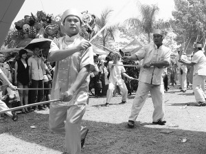 在云南西双版纳傣族自治州景洪市勐罕镇,作为当地“少数民族传统文化抢救与保护项目”之一的傣族武术培训班已经开班。来自景洪市嘎洒、勐罕、勐龙等乡镇的50多名傣族学员在这里开始了民族武术的学习。