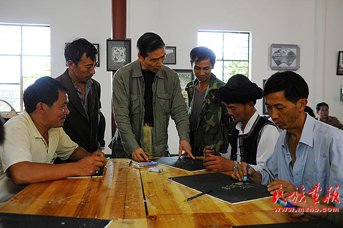为了提升作品质量,阿峨新寨村的版画创作者邀请专家对其进行艺术指导