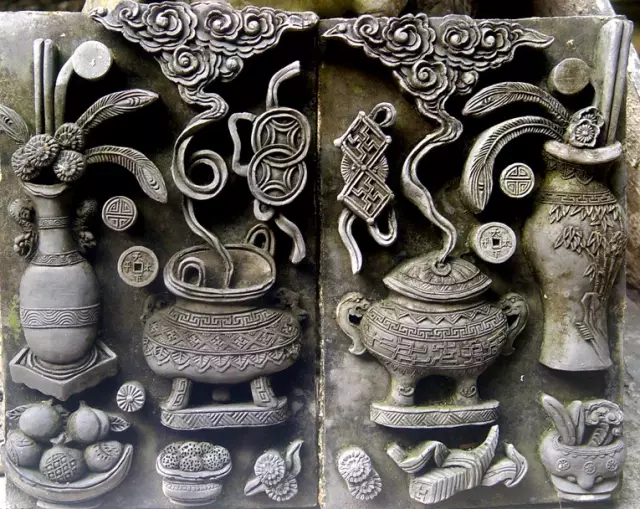 制作工艺与核心点是在于用金砖等级的成品青砖进行表面深度雕刻,这是我国几百年来传统意义上真正的砖雕,其它采用合成、翻模、窑前(即捏制成形后再烧制)等其他技术做成的产品可能在外观上可以效仿与复制,但随着安装后时间上的增加“仿品”的色泽,形变会逐渐体现出来甚至多数发生断裂、脱色、变色,并且在价值意义上忽略了传统砖雕精致细腻、气韵生动、极富书卷气等特点。