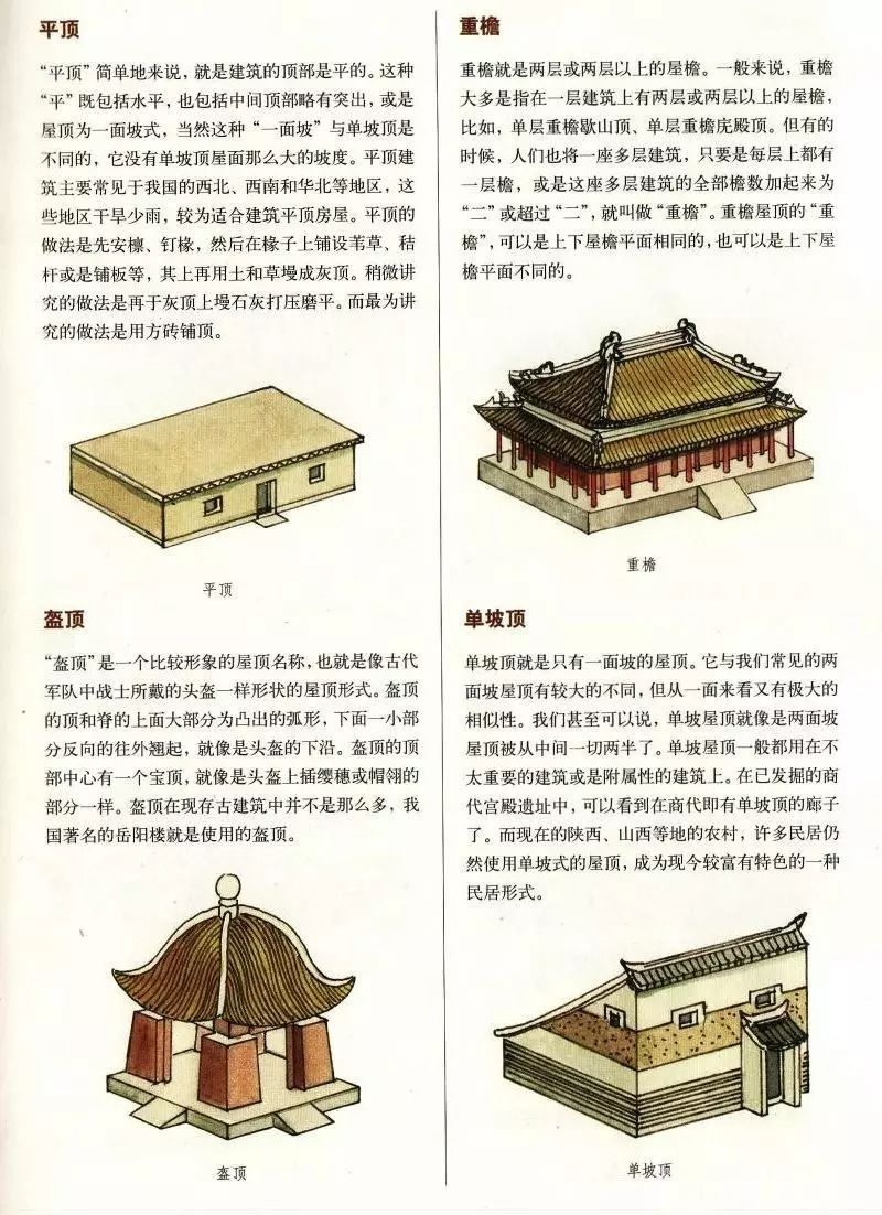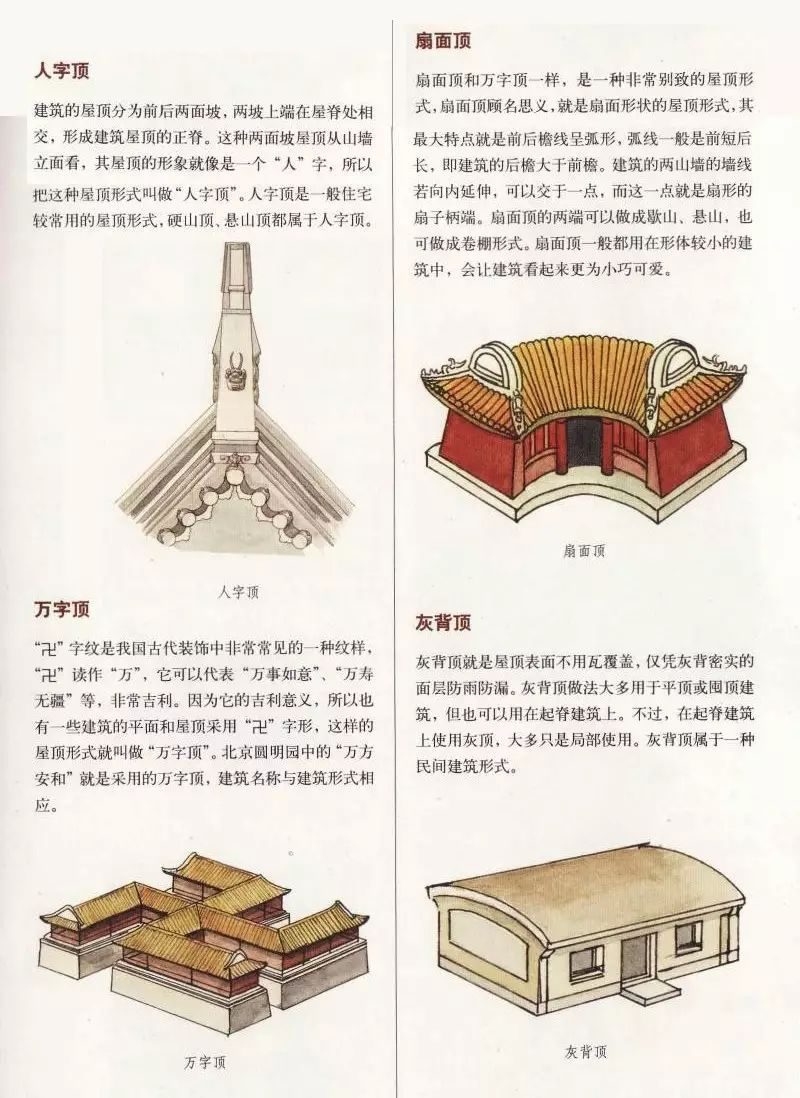 中国古代建筑屋顶不仅样式多,而且组成部分也有好几种,主要由屋面、屋脊等部分组成,而且有严格的等级制度。