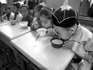 图为孩子们在上传承民族文化特色展示课。奶茶原为中国北方游牧民族的日常饮品,至今已有千年历史,蒙古奶茶至今仍然是日常饮用及待客的必备饮料。陈巴尔虎旗民族小学开展了具有浓浓的民族风味的实践活动课,通过一起熬制奶茶,学生和家长、老师们都受益匪浅。