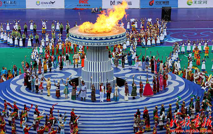 鄂尔多斯集团的发祥地伊克昭盟在2001年改为鄂尔多斯市,改革开放以来经济社会迅速发展,2017年中国地级市全面小康指数排名第九。2015年第十届全国少数民族传统体育运动会在鄂尔多斯市举办,这是开幕式现场(列来拉杜 摄影)