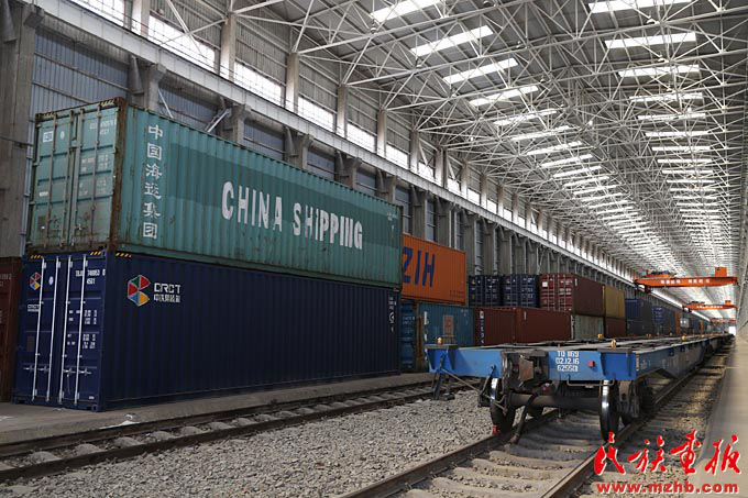 阿拉山口口岸有亚洲最大的“全天候”室内集装箱换装场,年换装能力20万标箱(滕俊 摄影)