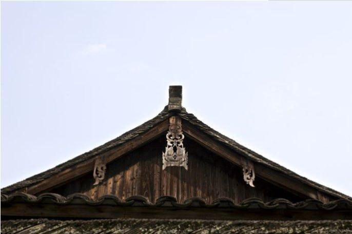 随着时间流转,悬鱼在匠人时代里闪转腾挪,历经了由简到繁的造型征途,也从功能构件升华为装饰构件。同旧时的其他建筑构件一样,悬鱼在实际功用与艺术创造间转徙。因此,它最先考虑了对木结构的保护,之后才生出装饰作用等枝蔓。悬鱼覆盖在博风板合角处的罅隙位置,不仅保护了合角处不受雨雪侵袭,同时可以美化接缝。悬挂后,也从结构上起到了稳定博风板的作用,同时还庇护了檩条端头,有效地防止了木制建筑过早斑驳。时至今日,悬鱼已然成为传统建筑中结构性与装饰性完美融合的一种构件,更是祖先智慧的一种体现。