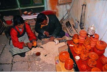 西藏人喝茶,一般都用的是木碗。木碗的用法,很有讲究。光景好的人家顿顿喝的是酥油茶,贫寒人家向来靠清茶打发日子。但是有钱汉也好,穷光蛋也罢,喝茶却都用木碗。即使有了玉碗和瓷碗,人们仍垂青于木碗。在家用它,出门也用它,形影不离,浪迹天涯的旅人的怀里都揣着个木碗,人在碗在,碗不离人。居家过日子,没有不出门的人。小小一个木碗,在家有在家的用法,出门有出门的讲究。木碗虽小,其俗颇丰。