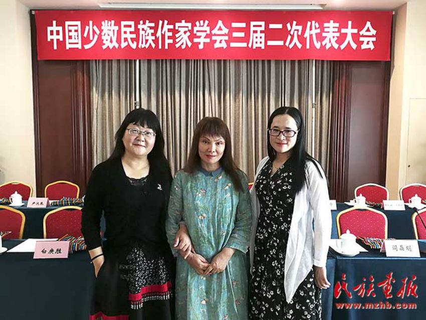 帕蒂古丽(中)出席中国少数民族作家学会第三届二次代表大会