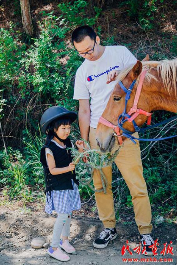 小小“牧马人”喂马。