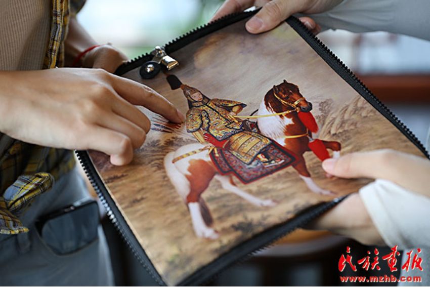 游客对民族工艺品爱不释手。