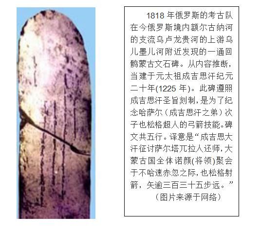 在成吉思汗叱咤风云的时代,中国北方与宋王朝并立先后存在过西夏、辽、金、蒙古等少数民族政权。这些政权的主体民族,西夏国的党项、辽国的契丹、金国的女真、蒙古国的蒙古,都有本民族语言,最初都没有本民族文字。建立政权后,为了适应政治和文化发展的需要,他们有的创立了本民族文字,如西夏文、契丹字、女真字等等。回鹘西迁之前,与蒙古共同生活在蒙古高原,他们都是游牧民族,经济文化与许多相似性,语言上同属阿尔泰语系,分属蒙古语族和突厥语族,因此蒙古语与维吾尔语的一些日常用语和词汇是相同或相近的。如黑(哈喇)、黄(霞喇)、金(阿拉泰)在蒙古语与维吾尔语中发言是一样的。成吉思汗命塔塔统阿用回鹘字母创建蒙古文字,就是在这样的时代背景和回鹘、蒙古的文化联系上产生的。现存用回鹘式蒙古文写成的文献中,最早的是1225年的《也松格碑》(成吉思汗石碑)。