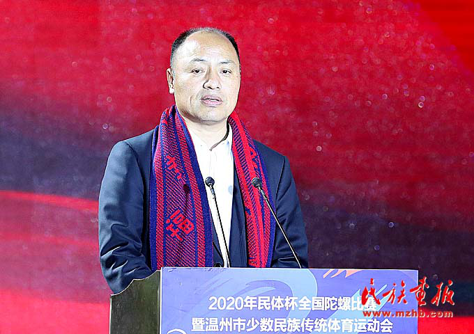 为发展民族传统文化体育,促进民族交往交流交融,推进民族团结进步事业,不断铸牢中华民族共同体意识,11月27日,2020“民体杯”全国陀螺比赛暨温州市少数民族传统体育运动会在浙江省温州市鹿城区白鹿洲公园隆重开幕。浙江省委常委、温州市委书记陈伟俊,国家民委监督检查司司长隋青,浙江省民宗委副主任钟新章,温州市委常委、统战部部长施艾珠,市委常委、秘书长王军,市人大常委会副主任张洪国,市人民政府副市长陈应许,市政协副主席诸葛启钏等领导出席开幕式,浙江省、市、县民族工作相关单位负责人及裁判员、教练员、运动员代表600余人参加了开幕式。
