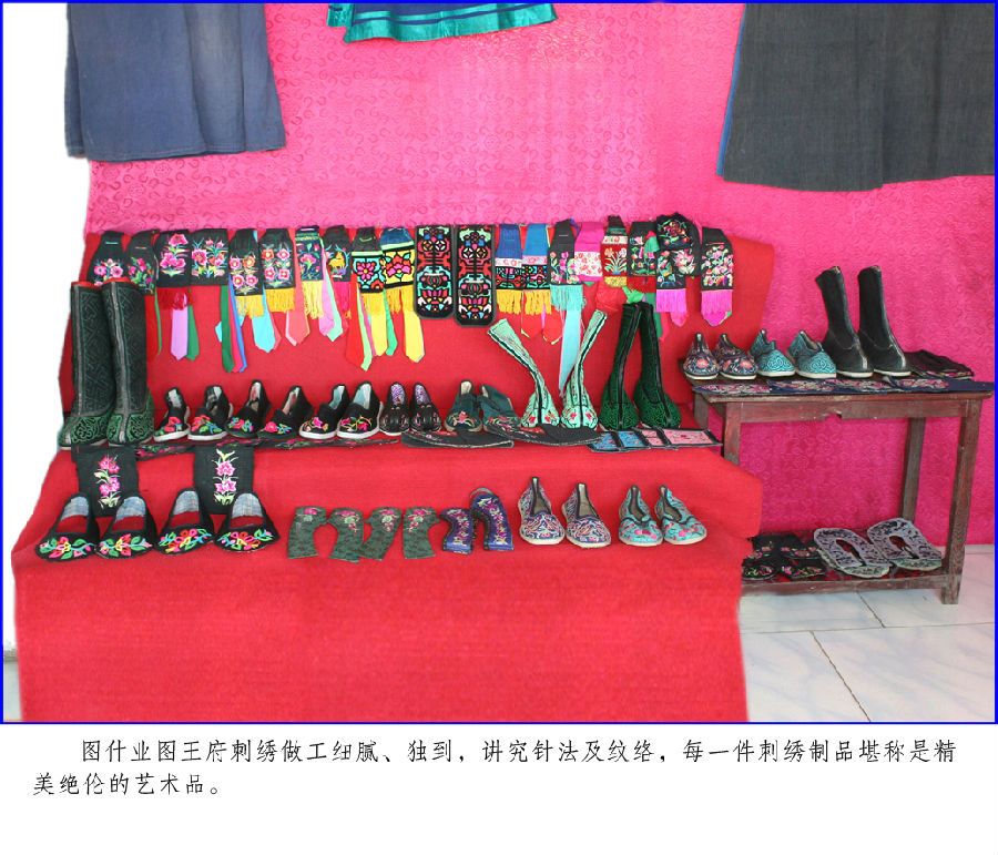 图什业图王府服饰包括:服装、服饰、鞋帽及马匹装饰等。或质朴、清新,或漂亮、华贵,或错落有致;既有山水,又有花鸟,形象逼真,惟妙惟肖,色彩协调,图案精美;其做工细腻独到,讲究针法及纹路,每一件服饰制品堪称是精美别致的艺术品。