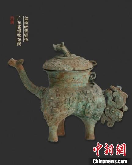 其中,1974年于广东信宜出土的西周兽面纹青铜盉在该展览中亮相。该盉高26.2厘米、口径14.2厘米,是代表性的盛酒器物。另一展出的汉代兽头陶盖壶,兽头双目外鼓,额上有棱角外突,嘴部宽扁呈盆口形,盖壶彩绘大部分已剥落,胎质疏松。