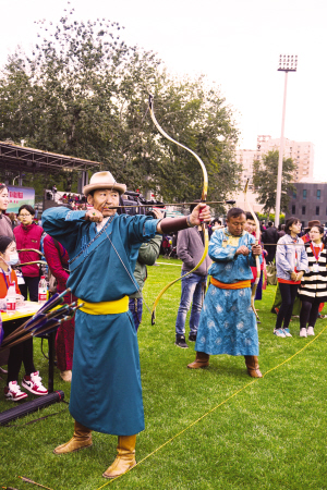 2016年10月22日,中央民族大学操场上热闹非凡。悠扬的马头琴声,飘香的奶酒,缤纷绚丽的蒙古族服饰,搏克、射箭等竞技活动以及蒙古族特色产品展销,把首都的一方土地变成了蒙古族传统节庆活动的欢乐海洋。据统计,当天有两万多名在京蒙古族同胞及来自全国各地的各族群众自发参与了这场民间活动。