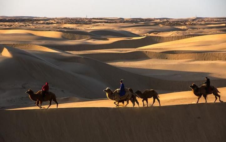 黄沙漫漫欲接天,驼影绵绵共比肩,