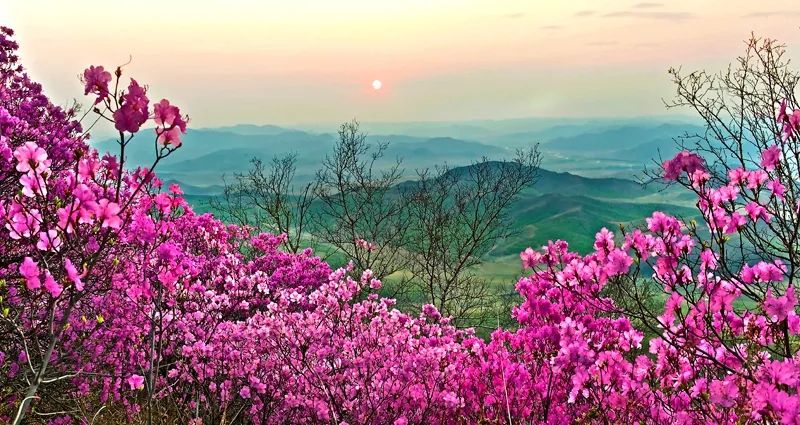 几百万亩的山杏花和杜鹃花海
