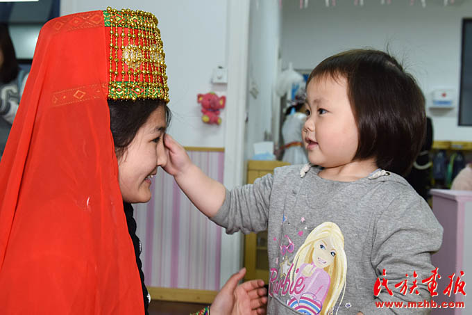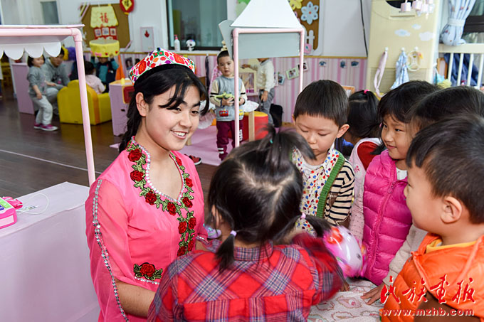 上海市群益职业技术学校的少数民族学生来幼儿园实习,学生们给孩子们讲民族故事
