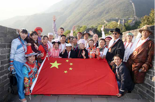 2017年全国少数民族参观团的各族代表参观慕田峪长城。(民族画报记者 娘吉加 摄影)