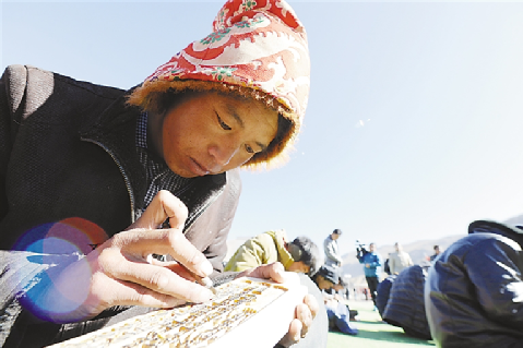 普松是著名的“雕刻之乡”。雕刻在尼木县普松乡有着悠久的历史,是普松乡群众世世代代传承下来的一项古老技艺,作为在全区享有盛誉的传统技艺,雕刻艺人在长年累月的钻研过程中不断对其进行丰富和发展。普松雕刻形式多样,应用广泛,不仅有单一的文字雕刻,还有图文并茂的图案;不仅应用于藏传佛教活动,还应用于印制经幡,西藏很多山口悬挂的经幡,都是用普松雕版印制的,在拉萨市场,它们占有90%的份额。(记者 旦增)