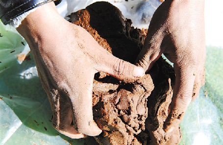 制作藏尼纸所用的狼毒草根原料。
