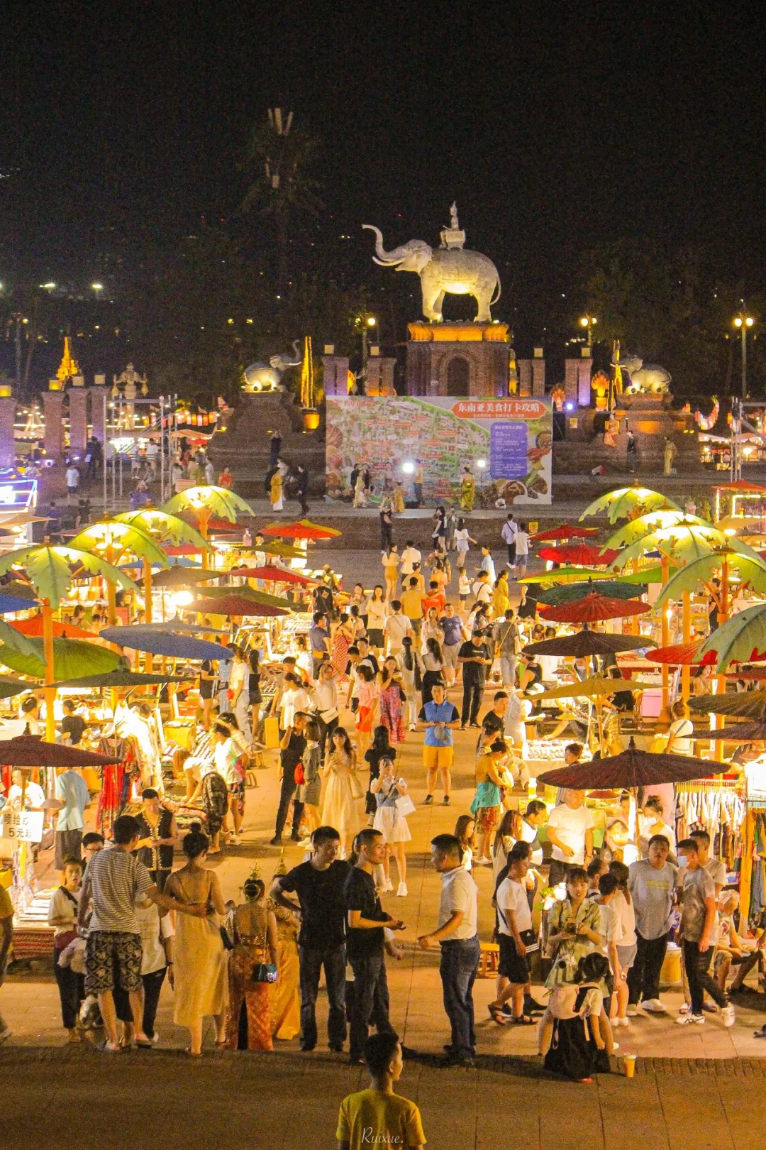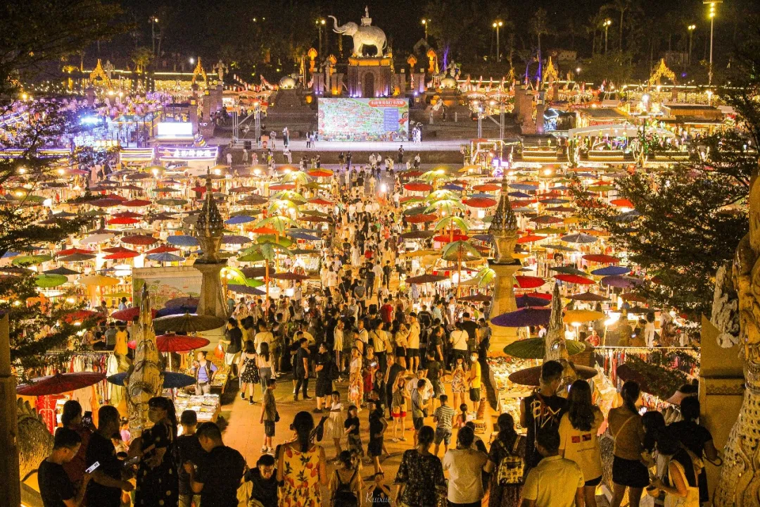 夜幕降临,告庄西双景星光夜市上千个特色摊位纷纷开始营业,与壮美的澜沧江江景交相辉映,成为西双版纳的新地标,热带夜生活风情的最佳体验地。