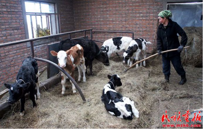 看着出生不久的牛犊 胡其勒满心喜悦,她很喜欢给牛犊喂草。